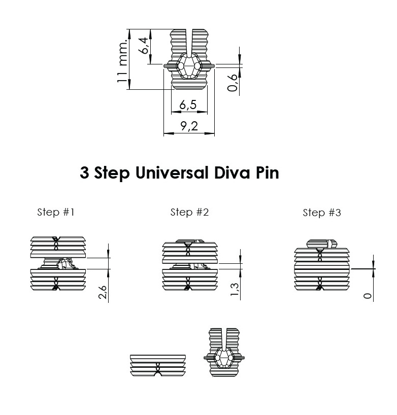 Snap Fitting "Diva" 3 Step, Male Part - Yellow PC,ø10 x 11mm