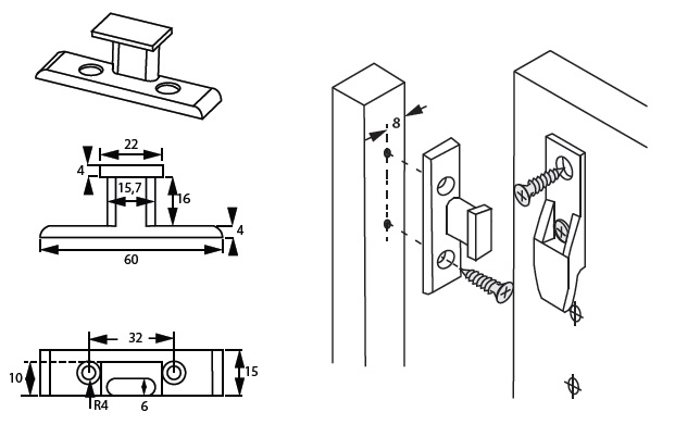 Suspended Hanger Fitting W/Side Guide on Male Part,Black PC, 2 Parts, (NOT FOR SALE GERMANY)