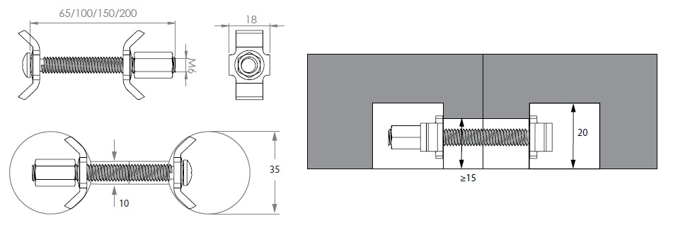 Worktop Connector Bore Hole ø35mm, Screw M6x150mm, Steel BZP