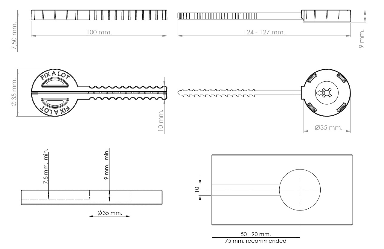Worktop Connector "Fix-A-Lot", ø35 x 127 x 9mm, POM-Grey, 1 Set = 1 Male + 1 Female Part