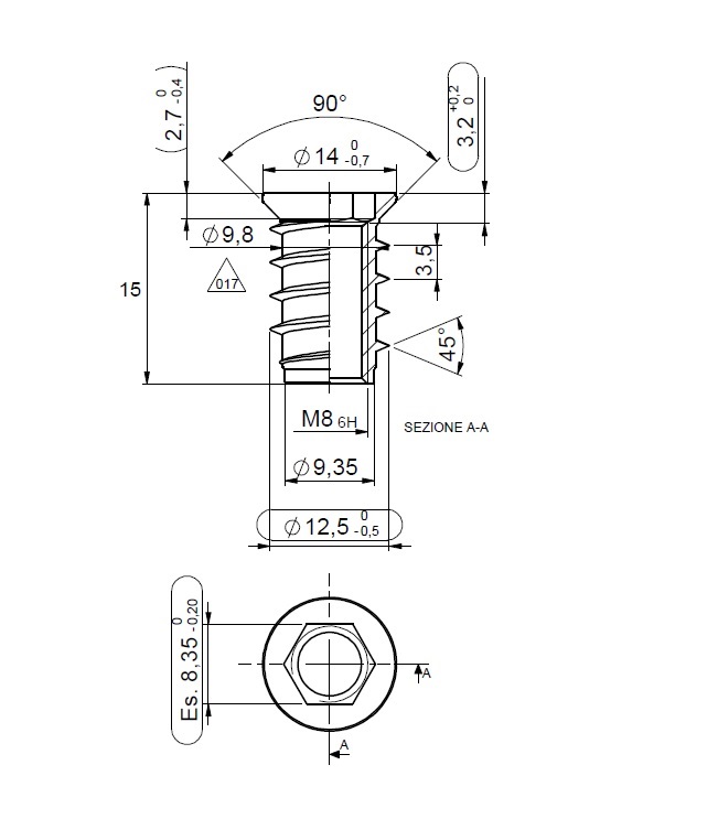 Screw-In Bushing M-815, M8x15mm, Steel, BZP, Hex 8mm