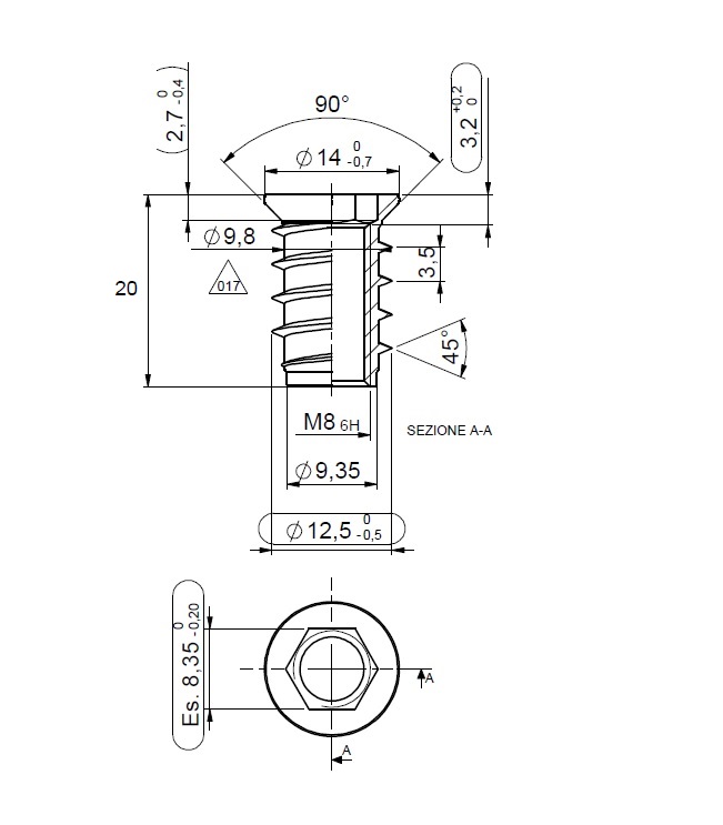Screw-In Bushing M-820, M8x20mm, Steel, BZP, Hex 8mm