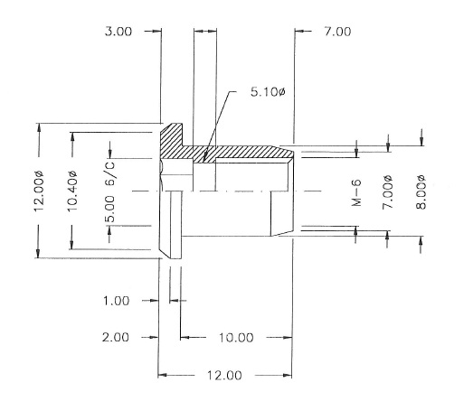 Combifix Head No. 1007, 5mm Hex, M6, Flat Head,Brass Natural