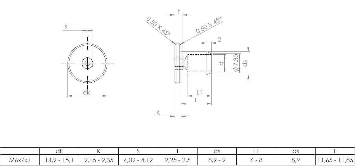 Combifix Head No. 1012, 4mm Hex Hole, M6, Flat Head, SS-304