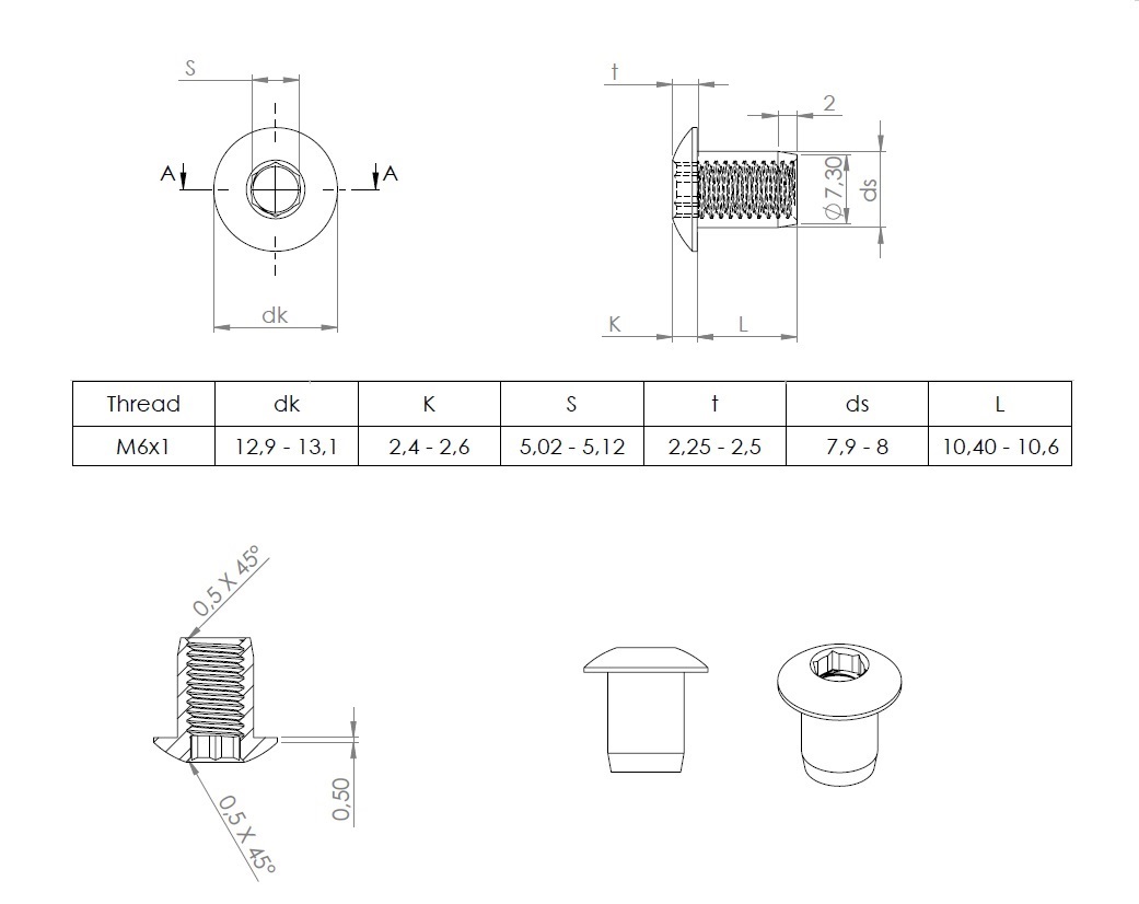 Combifix Head No. 1015, 5mm Hex, M6, Dome Head, SS-304