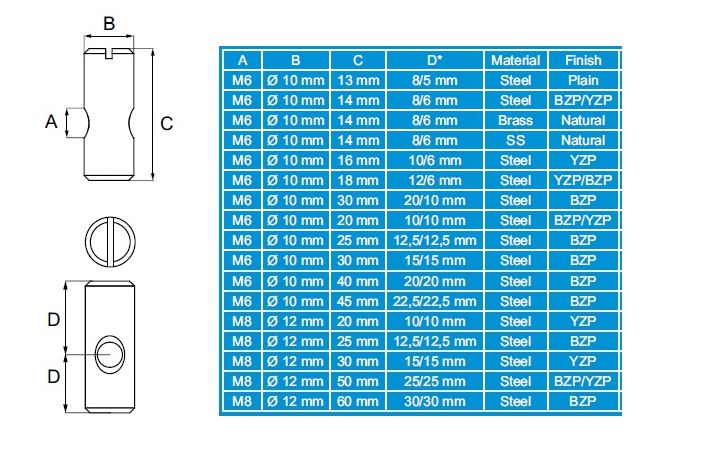 Cross Dowel ø12x30mm(15+15), M8, Steel, Bright Zinc Plated