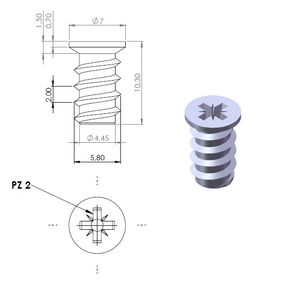 Euro Screw, CSK, PZD, NPL, 5.8 x 10mm Small Head