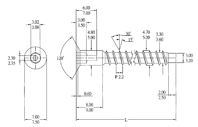 Assembla Screw, CSK, Hex, ø5,0 x 50mm, Steel BZP, W/Hole