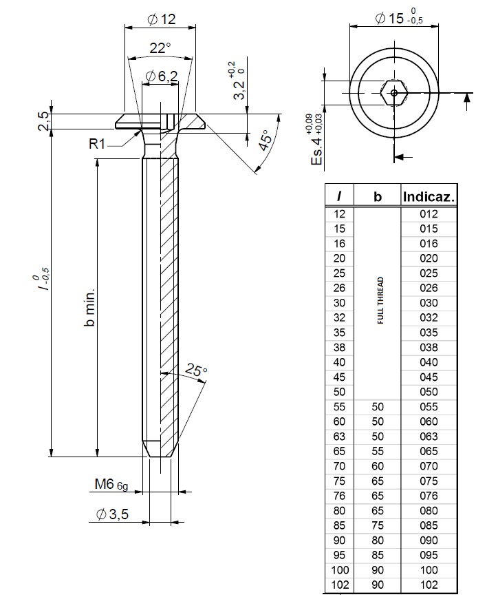 Fifteen Screw, M6x40mm (38+2), BZP, 4mm Hex, Conical