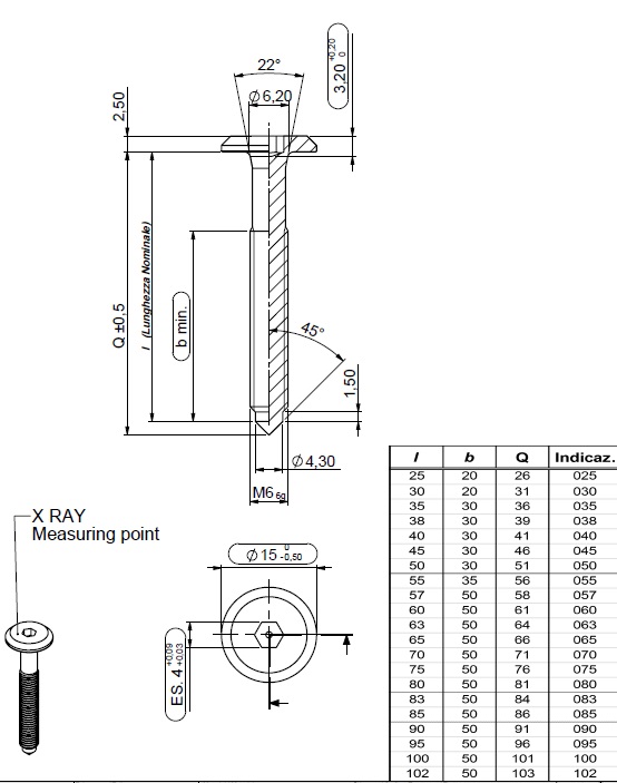 Fifteen Screw, M6x40mm (38+3), YZP, Hex 4mm, Pointed