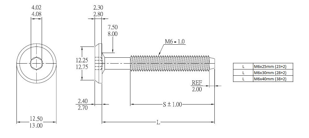 Thirteen Screw, M6x34mm, Black Oxide, Conical