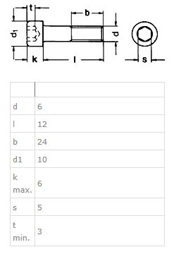 Inbus Screw, M6 x 12mm, Hex 5mm, Stainless Steel A2, DIN 912
