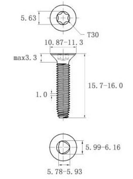 Self-Tapping Screw CSK, Carbon Steel, M6x16mm, Torx 30, F/ "Sigs" Partition