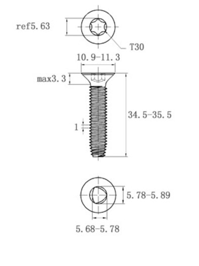 Self-Tapping Screw CSK, Carbon Steel, M6x35mm, Torx 30, F/ "Sigs" Partition