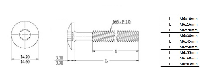 Mushroom Screw, M6x20mm, Black Oxydized, Hex 4mm, Blunt