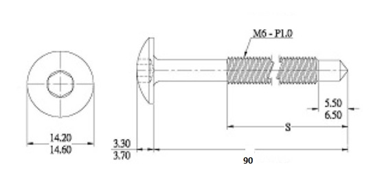 Mushroom Screw, M6x90 (84+6), YZP, Hex 5mm, Pointed