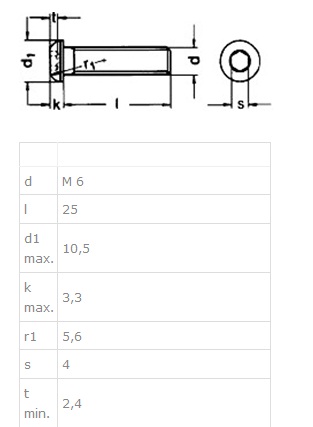 Socket Button Head Screw, M6x25mm, SS/A2, ISO 7380, W/Hex