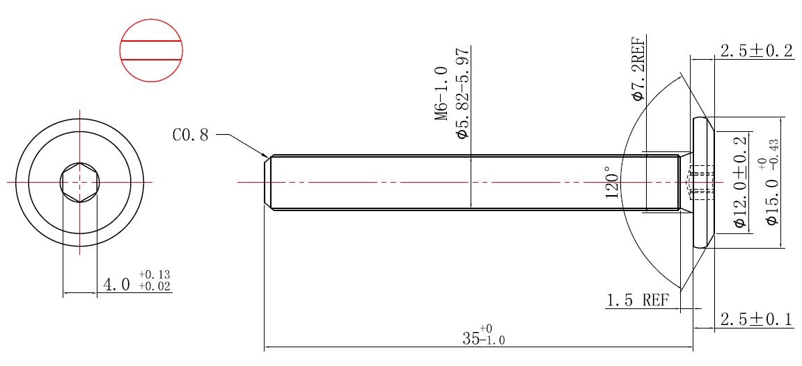 Fifteen Screw, M6x35mm, SS316, Blunt