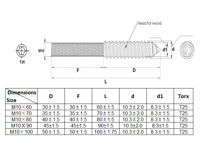 Hangerbolt, Cylindrical, M10x90mm, 50/50, Steel-BZP