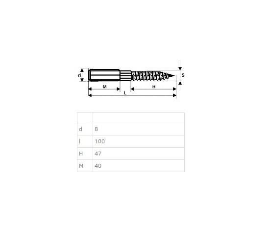 Hangerbolt, Cylindrical, M8x100mm, Stainless Steel A2,