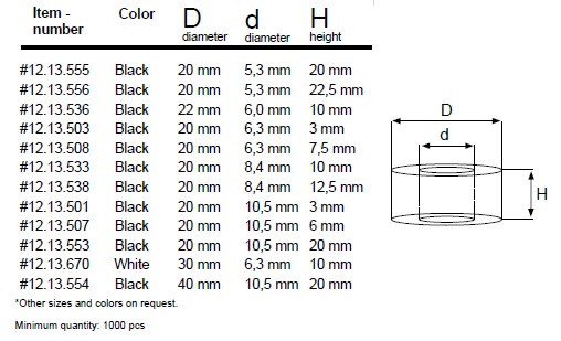 Distance Spacer, PE, Black, H=10mm, OD=20mm, ID=8.4mm