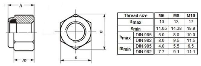 Hex Nut W/Nylon Ring, M10, DIN 985-10, Stainless Steel A2