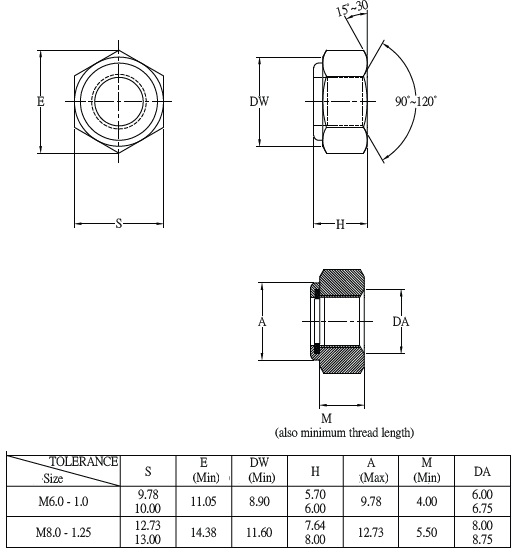 Hex Nut W/Nylon Ring, M8, DIN 985-8, Yellow Zinc Pl.