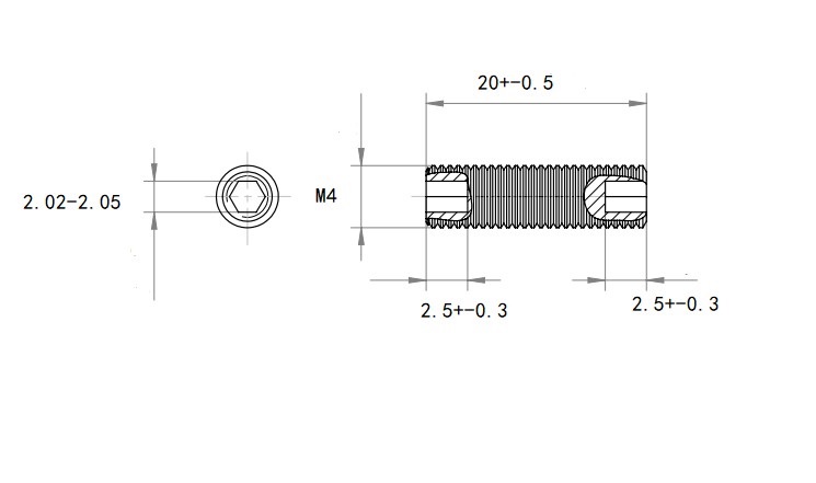 Threaded Bolt "Acu" M4x20mm, A2, W/2mm Hex in Both Ends, M4 Tolerance 3,84mm - 3,98mm