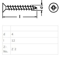 Chipboard Screw, CSK, PZD, SS A2, ø4,0x12mm, Fully Threaded