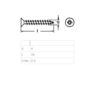 Chipboard Screw, CSK, PZD, SS A2, ø4,0x70mm, Fully Threaded