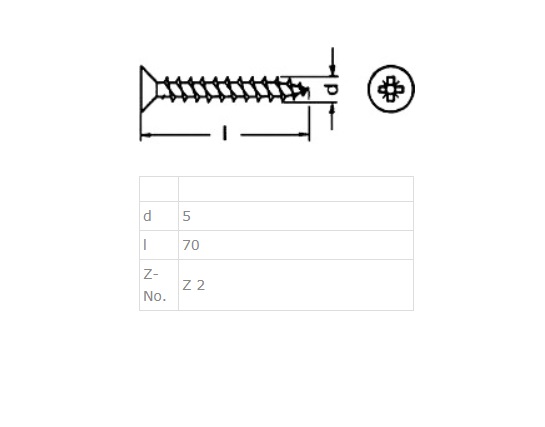 Chipboard Screw, CSK, PZD, SS A2, ø5,0x70mm, Fully Threaded