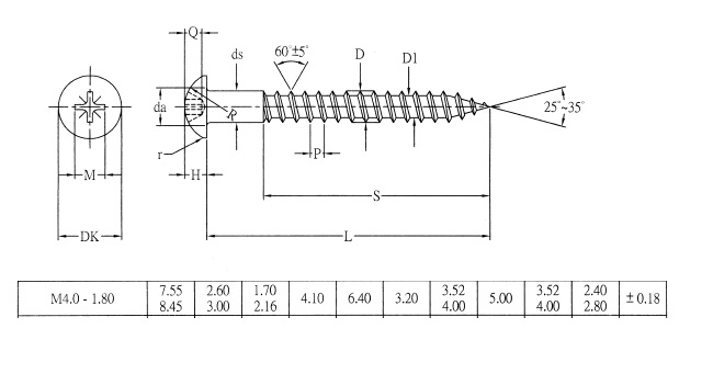 Wood Screw, 4x20mm, Pan Head, DIN 7996, Steel Black Oxi, PZD