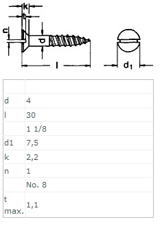 Wood Screw, CSK, SS A2, 4,0x30mm, DIN 97, Slot