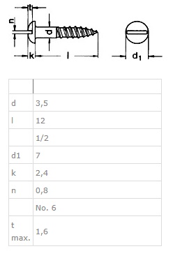 Wood Screw, RDH, SS A2, 3,5x12mm, DIN 96 Slot