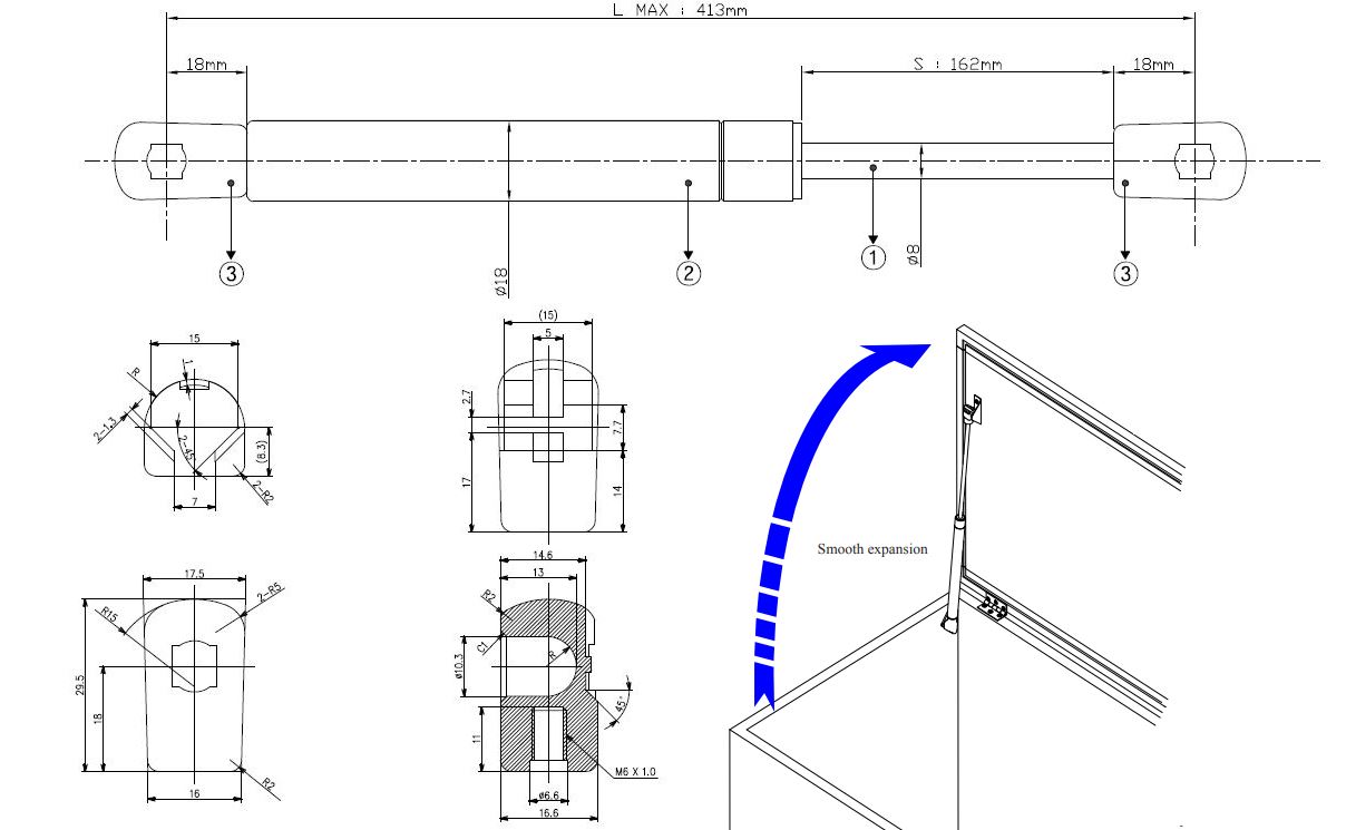 Expansion Spring 413mm, 16 KG, Steel, CP, W/SISO Logo