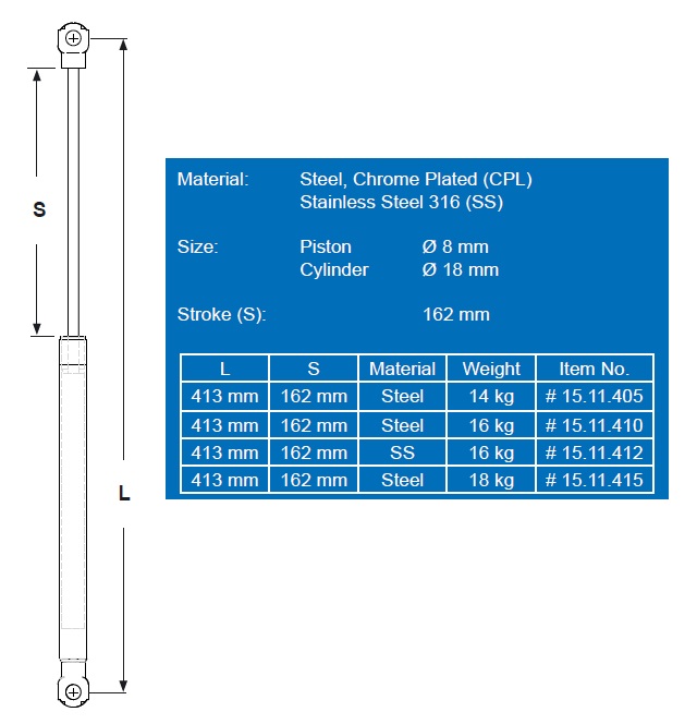 Expansion Spring 413mm, 18 KG, Steel, CP, W/SISO Logo