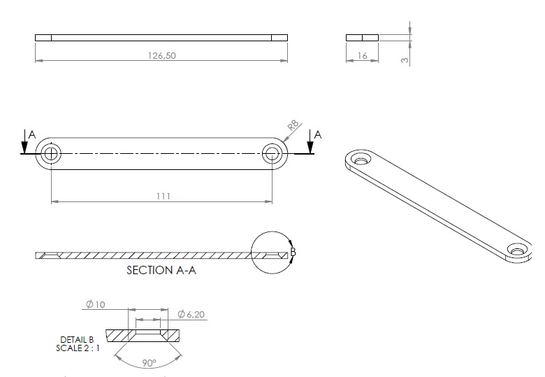 Steel Strap, YZP 6 MY, L 126,5mm,W 16mm,Thick 3.0mm,cc 111mm