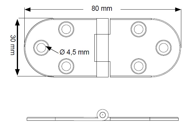 Flap Hinge, Brass, 30x80x2mm, Nickel Pl, W/CSK ø4,5mm Holes