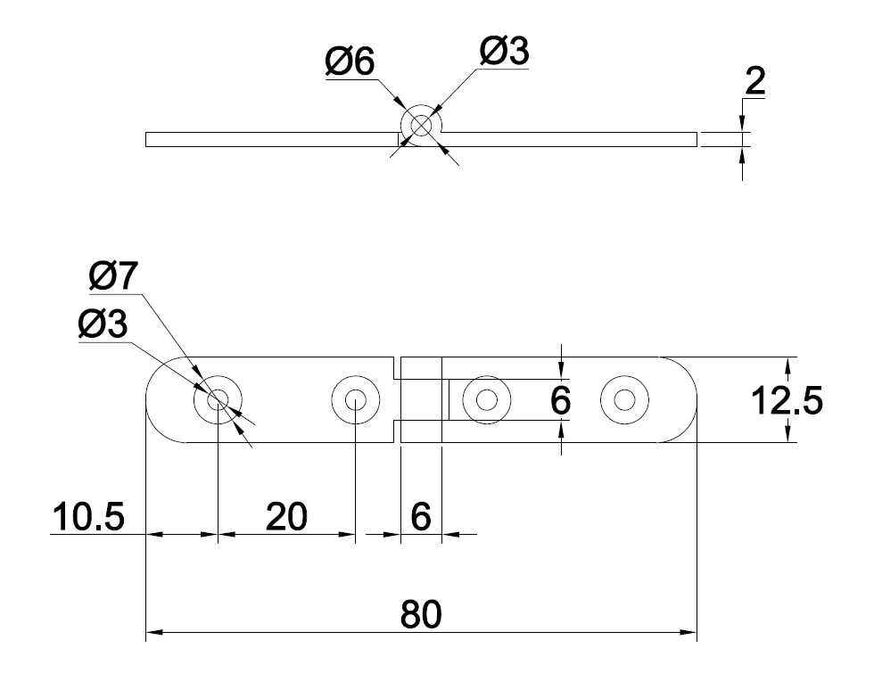 Flap Hinge "Slim", Brass, 12,5x80x2mm, SS- Look