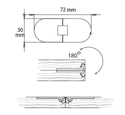 Sewing Table Hinge, Brass, 30x72x2mm, No Holes, Sanded