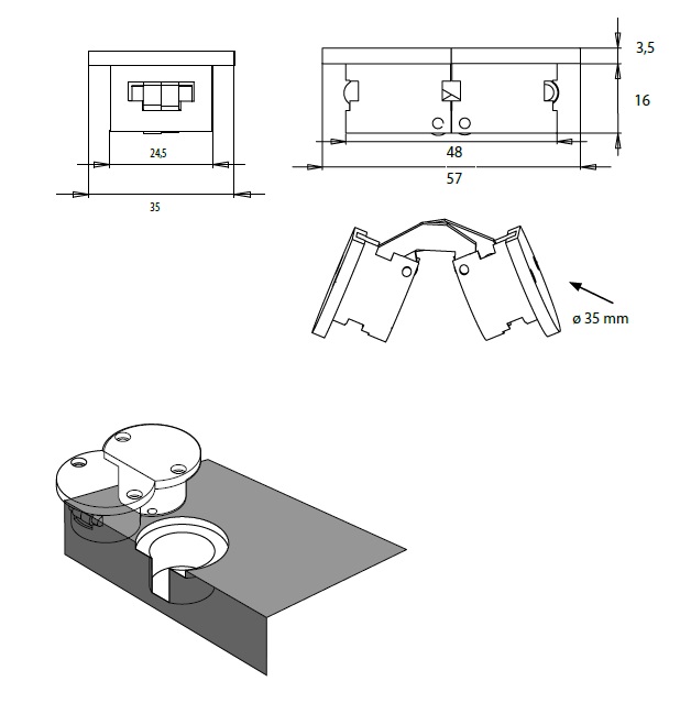 Table Flap Hinge Nylon/Zamak, Beige/YZP, Bore ø35x16mm