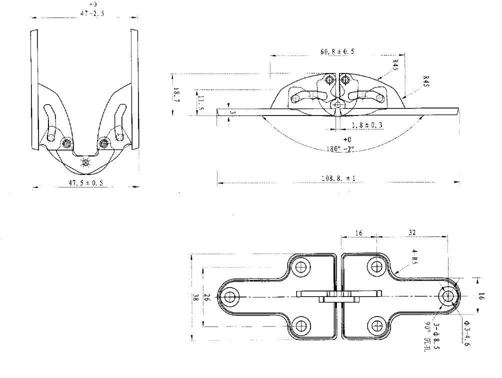 Table Flap Hinge Zamak, W/Steel Linkage YZP-CR3, F/20mm Panels, Overall Size:108 x 40 x 3mm
