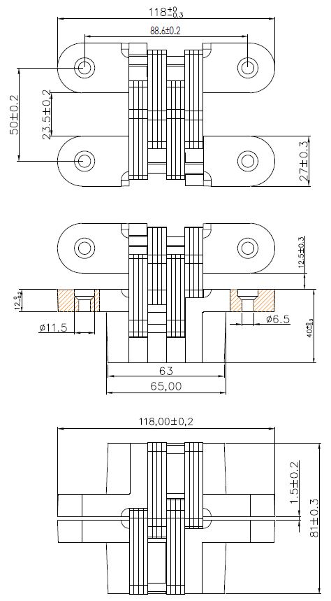 Vici Hinge, Zamak, 118x27mm SS Linkage, SS-Brushed, W/Screws