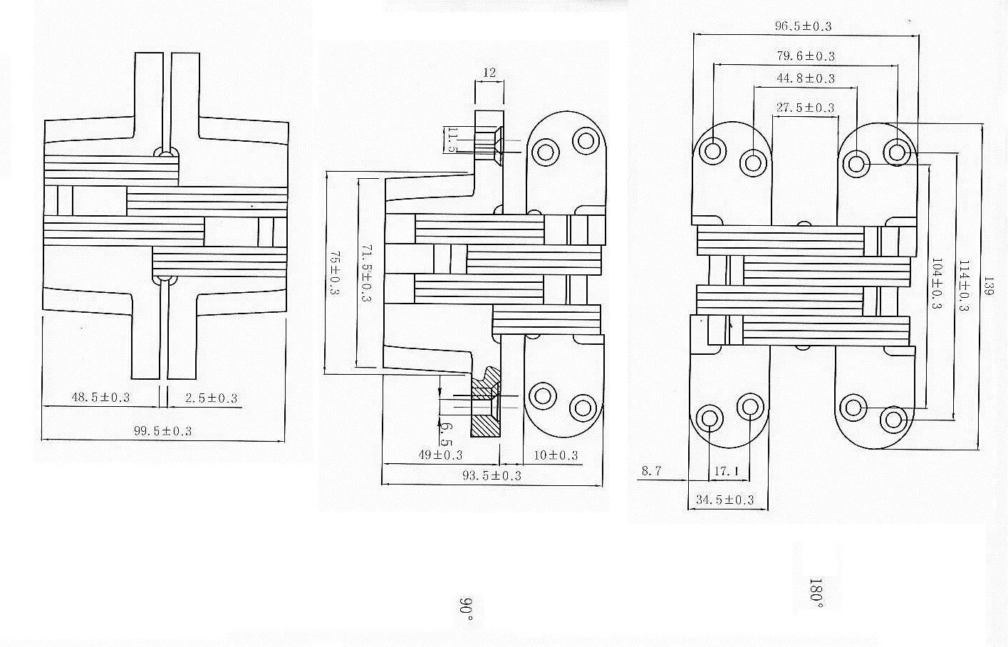 Vici Hinge, Zamak, 139x34mm SS Linkage, SS-Brushed, W/Screws