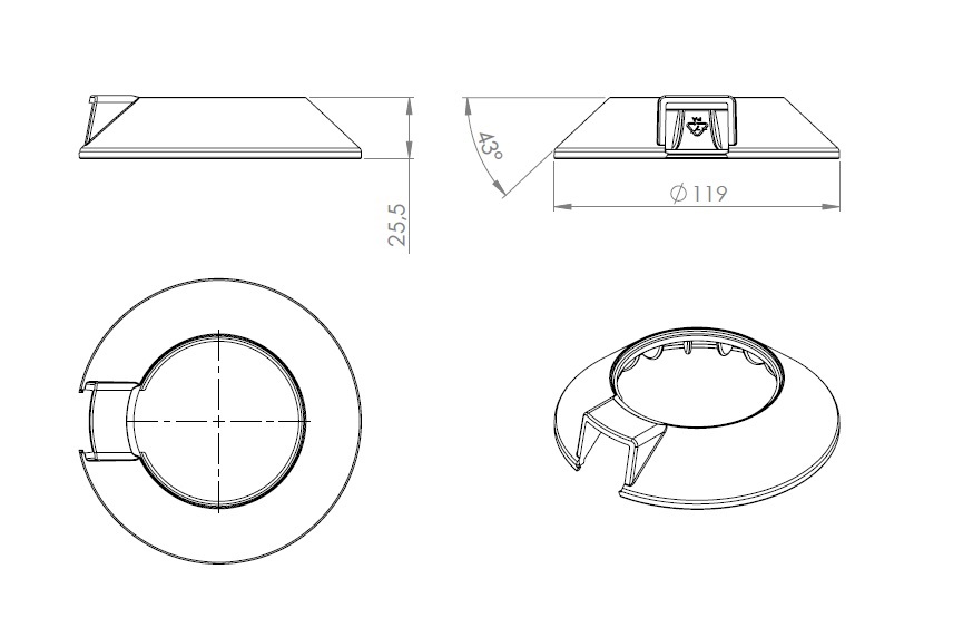 Cover Plate F/"Swing" Table Support, Black PA, W/SISO Logo