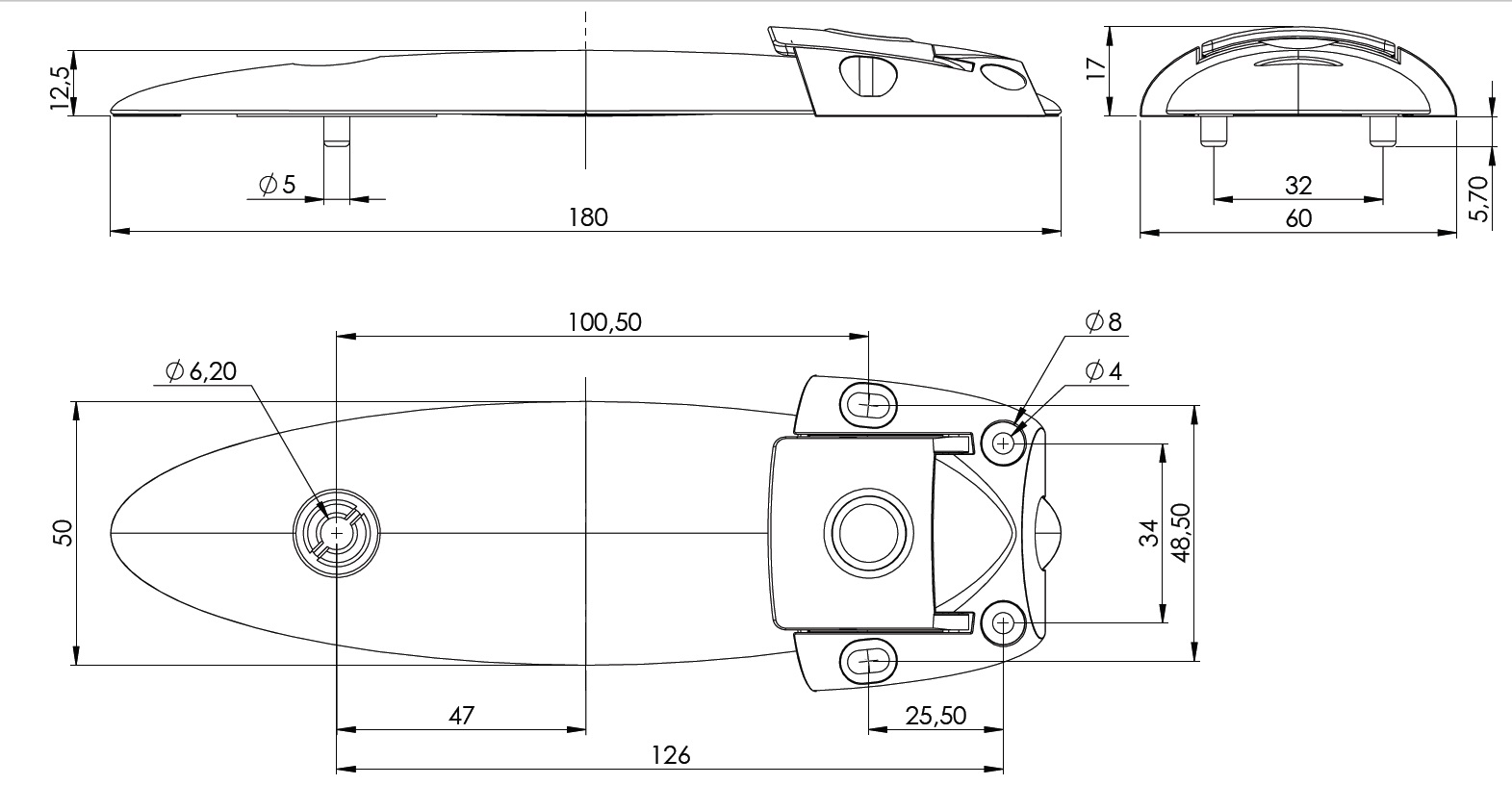 Surf Table Connector, Male & Female, PA6, Black, Screws & Bushing to be bought separetely (4 x 11.08.298 + 1 x 12.00.903 + 1 x 12.10.223)
