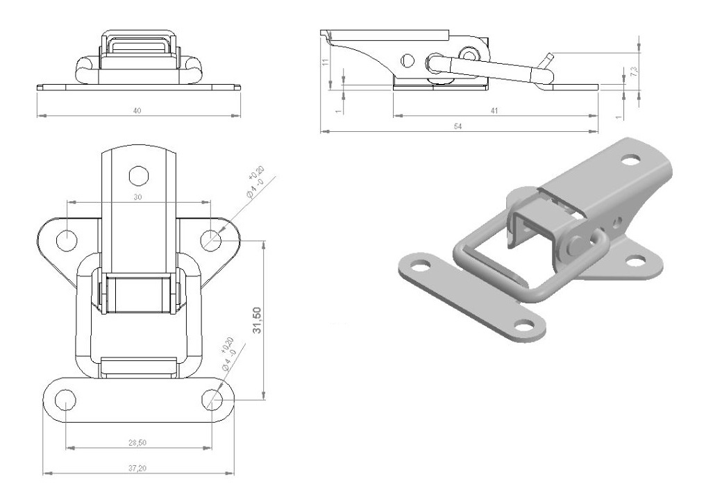 Table Catch "Mini" Only, Steel, 45 x 39mm, ZP, W/O Striker , With SISO logo