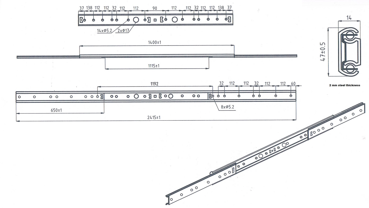 Table Extension 9097-S 1080mm, "No Angle" on Wing", ZPL Opening:1090mm, Closed: 1400mm, Wing Size: 650mm, Total Lenght When Open:2390mm, Load Capacity: 90Kg. Profile Height:49mm