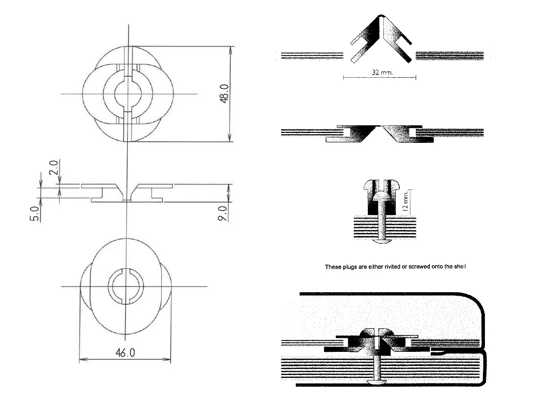 Upholstery Clip Fold-In #966+968, Male+Female, 12mm plug