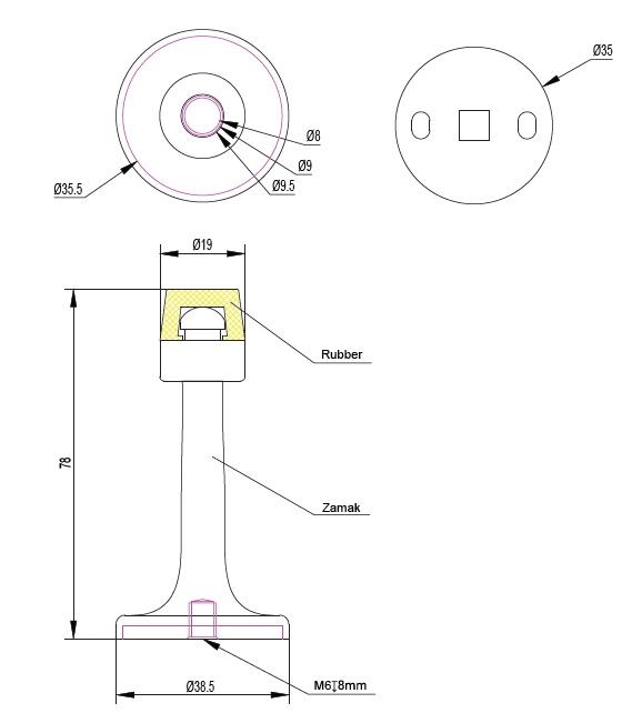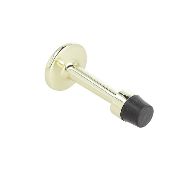 Door Stopper "Wasp", Zamak, 78x38,5mm, Polished Brass, Incl. Plugs, ø3,5x25mm Screws. Black Rubber